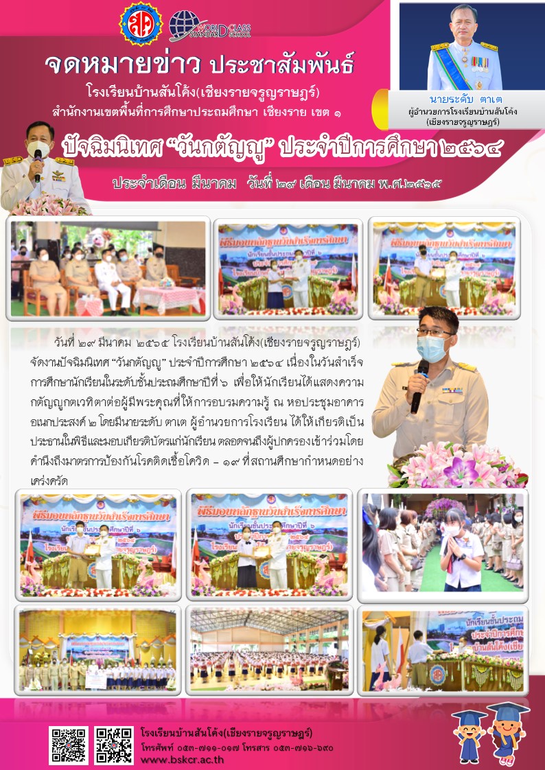 จดหมายข่าว ปัจฉิมนิเทศ “วันกตัญญู” ประจำปีการศึกษา 2564