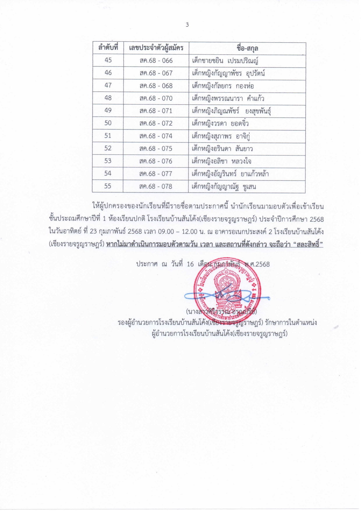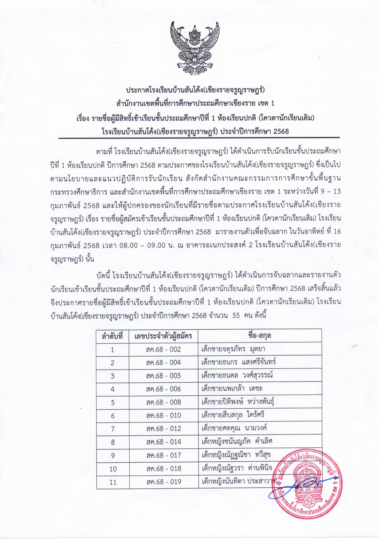 ประกาศรายชื่อผู้มีสิทธิ์เข้าเรียนชั้นประถมศึกษาปีที่ 1 ห้องเรียนปกติ (โควตานักเรียนเดิม) ปีการศึกษา 2568 16 ก.พ. 2568webmasterประกาศ