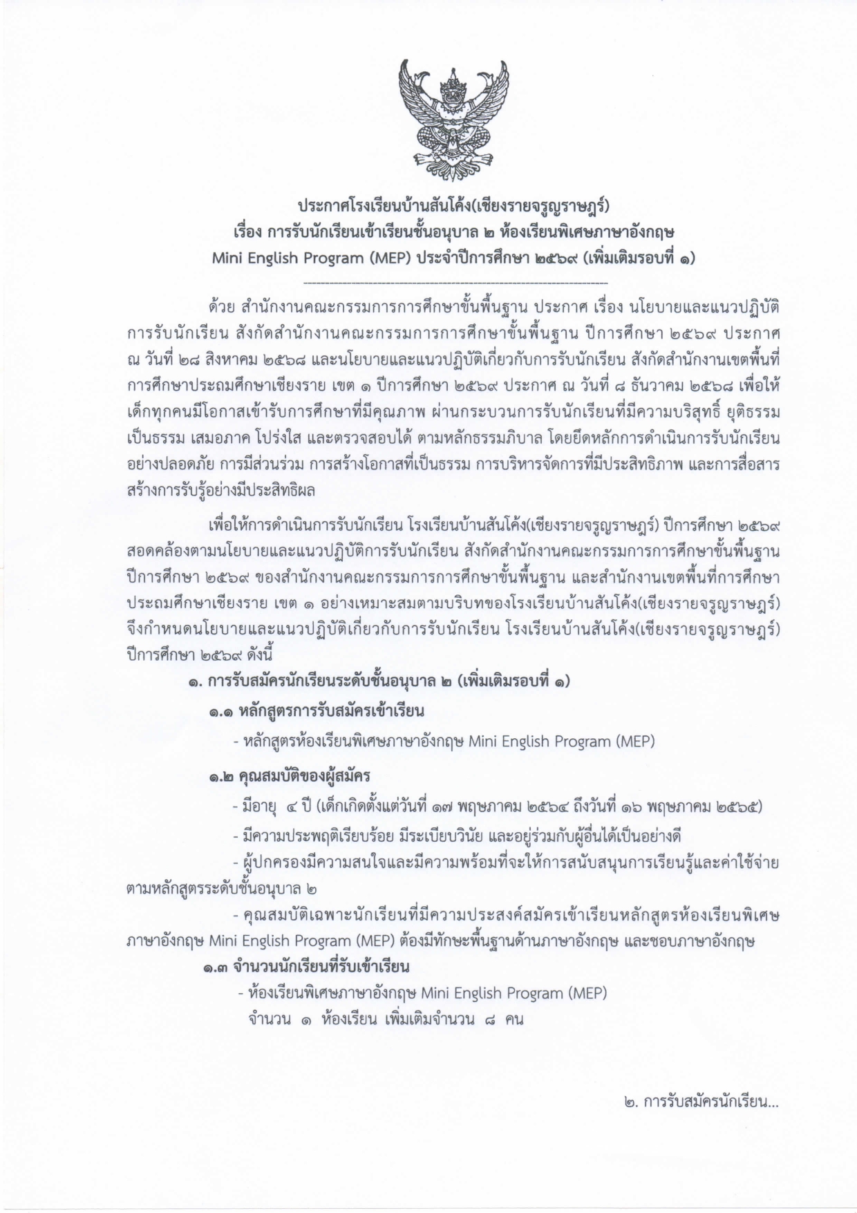 ðĢāļāļĢāļ°āļāļēāļĻāļāļēāļĢāļĢāļąāļāļĢāļąāļāļāļąāļāđāļĢāļĩāļĒāļāđāļāđāļēāđāļĢāļĩāļĒāļāļāļąāđāļāļāļāļļāļāļēāļĨ 2 āļŦāđāļāļāđāļĢāļĩāļĒāļāļāļīāđāļĻāļĐāļ āļēāļĐāļēāļāļąāļāļāļĪāļĐ Mini English Program (MEP) āļāļĢāļ°āļāļģāļāļĩāļāļēāļĢāļĻāļķāļāļĐāļē 2569 (āđāļāļīāđāļĄāđāļāļīāļĄāļĢāļāļāļāļĩāđ 1)ðĪâĪïļ