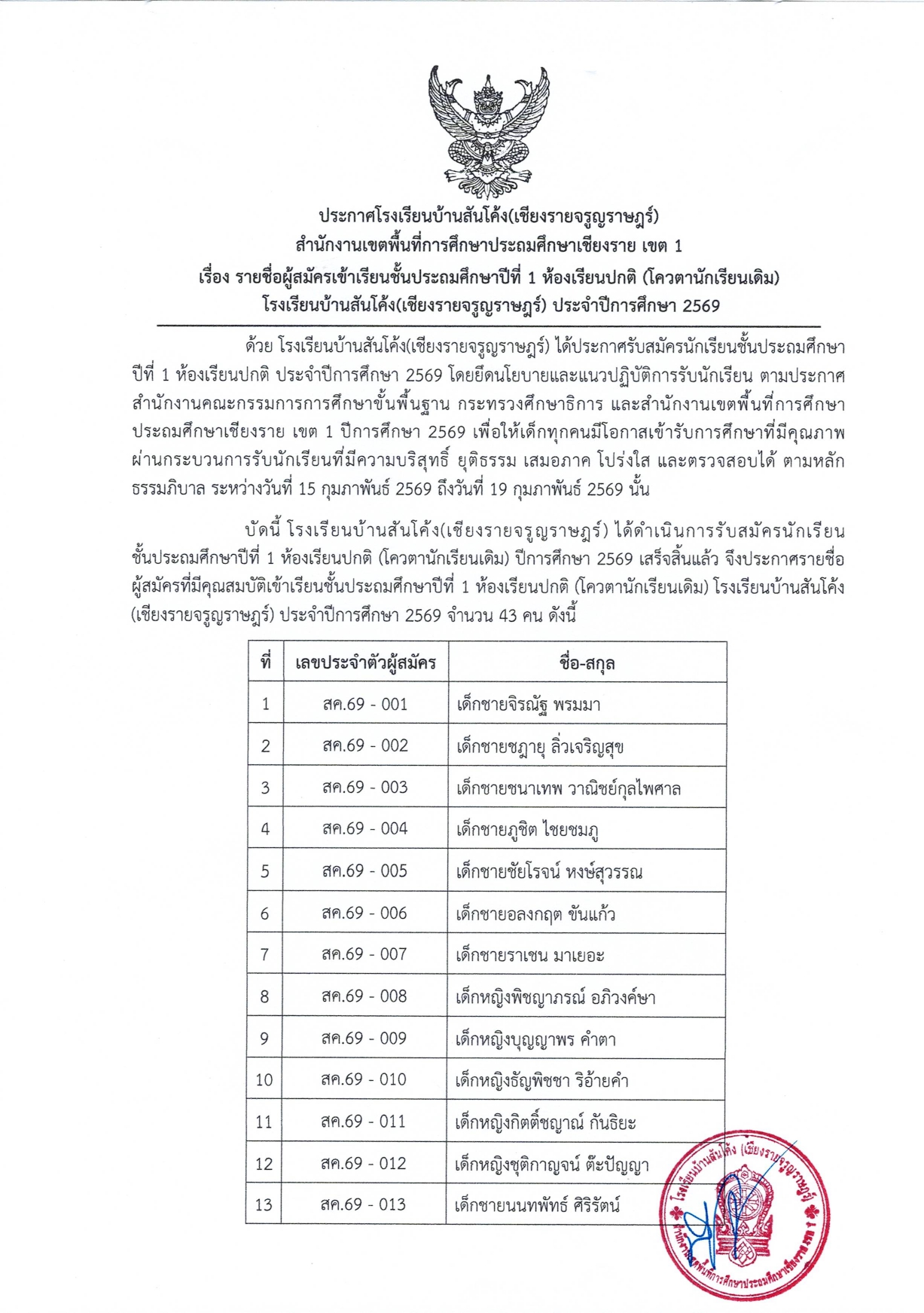 ðŸ“Ģāļ›āļĢāļ°āļāļēāļĻāļĢāļēāļĒāļŠāļ·āđˆāļ­āļœāļđāđ‰āļŠāļĄāļąāļ„āļĢāđ€āļ‚āđ‰āļēāđ€āļĢāļĩāļĒāļ™āļŠāļąāđ‰āļ™āļ›āļĢāļ°āļ–āļĄāļĻāļķāļāļĐāļēāļ›āļĩāļ—āļĩāđˆ 1 āļŦāđ‰āļ­āļ‡āđ€āļĢāļĩāļĒāļ™āļ›āļāļ•āļī (#āđ‚āļ„āļ§āļ•āļēāļ™āļąāļāđ€āļĢāļĩāļĒāļ™āđ€āļ”āļīāļĄ) āļ›āļĢāļ°āļˆāļģāļ›āļĩāļāļēāļĢāļĻāļķāļāļĐāļē 2569 ðŸĪâĪïļ