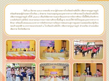 วันที่ ๒๔ มีนาคม พ.ศ. ๒๕๖๕ นายระดับ ตาเต ผู้อำนวยการโรงเรียนบ้านสันโค้ง(เชียงรายจรูญราษฎร์) พร้อมด้วยรองผู้อำนวยการโรงเรียน ๔ ฝ่ายงาน ร่วมประชุมครูและบุคลากรทางการศึกษาของโรงเรียนบ้านสันโค้ง(เชียงรายจรูญราษฎร์) ครั้งที่ ๑/๒๕๖๕ เพื่อแจ้งข้อราชการและหารือแนวทางการจัดการศึกษา ทั้งนี้ได้รับเกียรติจาก นายอัมรินทร์ มณีรัตน์ ประธานคณะกรรมการสถานศึกษาขั้นพื้นฐาน พบปะให้กำลังใจครูและบุคลากรทางการศึกษา พร้อมทั้งนำเสนอแนะแนวทางการจัดกิจกรรมการเรียนการสอนควบคู่การดูแลความปลอดภัยแก่ผู้เรียนรอบด้านทุกมิติ ณ อาคารอเนกประสงค์ ๒ โรงเรียนบ้านสันโค้ง(เชียงรายจรูญราษฎร์) ตำบลเวียง อำเภอเมืองเชียงราย จังหวัดเชียงราย 24 มี.ค. 256524 มี.ค. 2022webmasterกิจกรรมภายใน